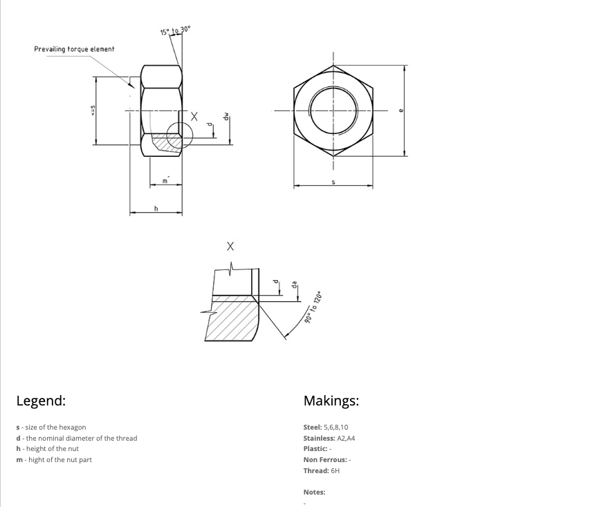 DIN 982 lock nuts feature a standard hexagonal profile with a non-metallic nylon insert that grips the mating thread, providing a secure, self-locking mechanism. This design effectively prevents loosening under dynamic loads or vibration, making them ideal for bolted joints where joint integrity and safety are critical. Unlike standard hex nuts, the nylon insert deforms elastically, adding friction against the bolt threads without damaging them—ensuring reusability for a limited number of cycles.